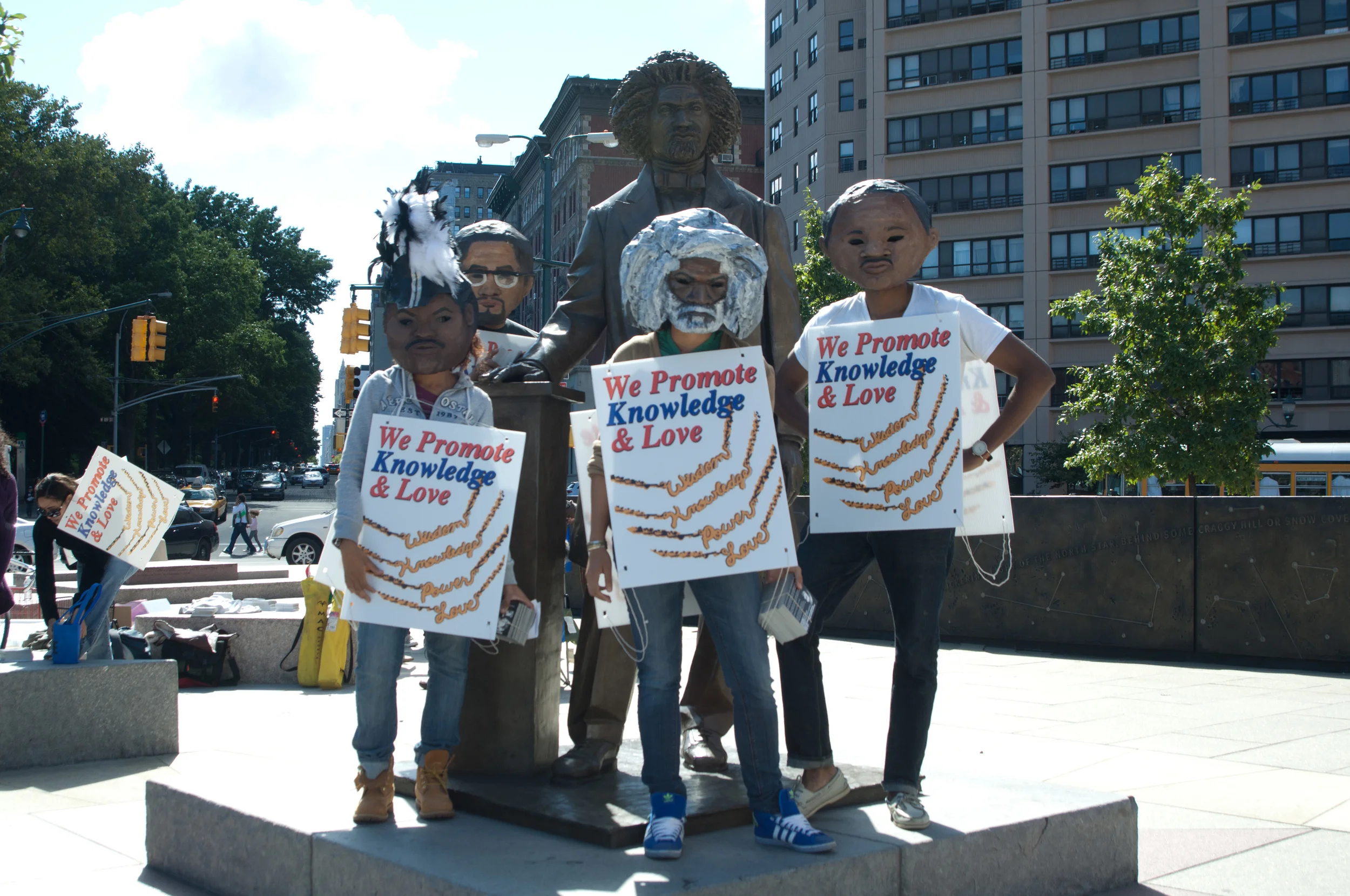 2011- A public engagement performance art project borrowing the street advertising tactics of pawnbrokers in low-income communities as a vehicle to promote knowledge, and self-empowerment rather than commerce, or monetary wealth. A Harlem Day Parade iteration was supported by 37 project volunteers, a successful Kickstarter campaign. More than 10,000 Harlem historical figure wisdom quote flyers were disseminated.